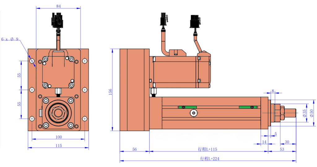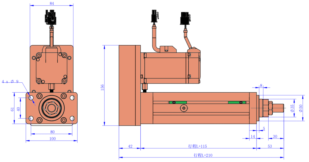 | 匹配400W伺服-前法兰安装-外螺纹输出-额定推力1350N-有效行程100mm-额定速度250mm/s | HHM802-R1101P05C7ASFE2NA04DNN-1 | |